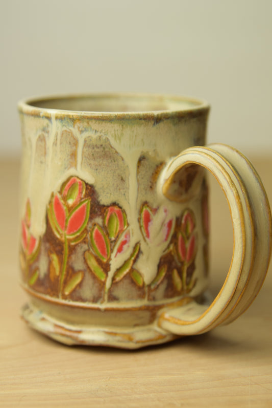 Wheel Thrown Pottery - Cottage Rustic Red Roses Mug