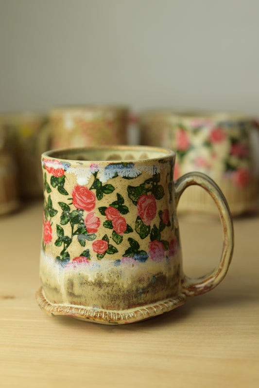 Wheel Thrown Pottery - Cozy Cottage Red Roses Mug