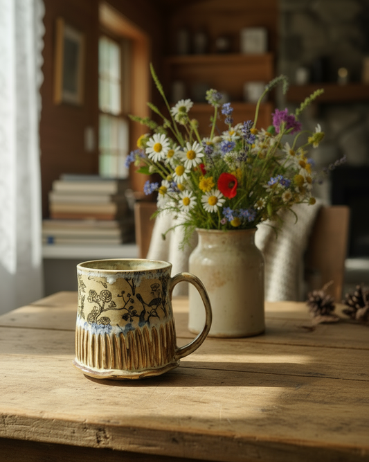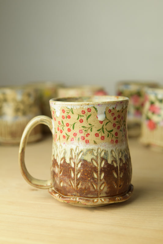 Wheel Thrown Pottery - Cozy Cottage Floral Mug