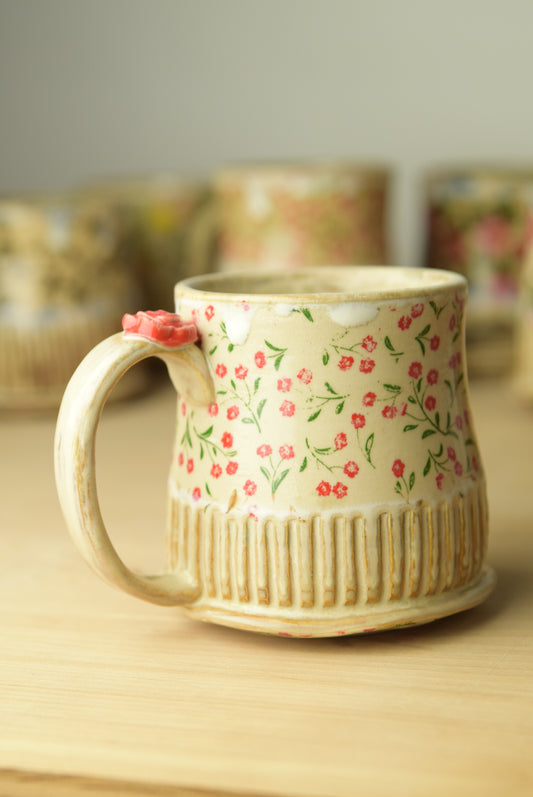 Wheel Thrown Pottery - Cottage Core Mini Red Roses Mug