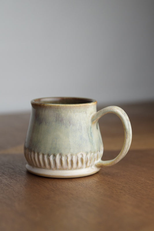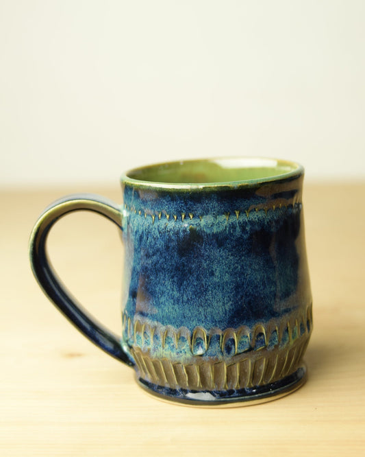 Deep Blue and Green - Wheel Thrown Carved Ceramic Coffee Mug
