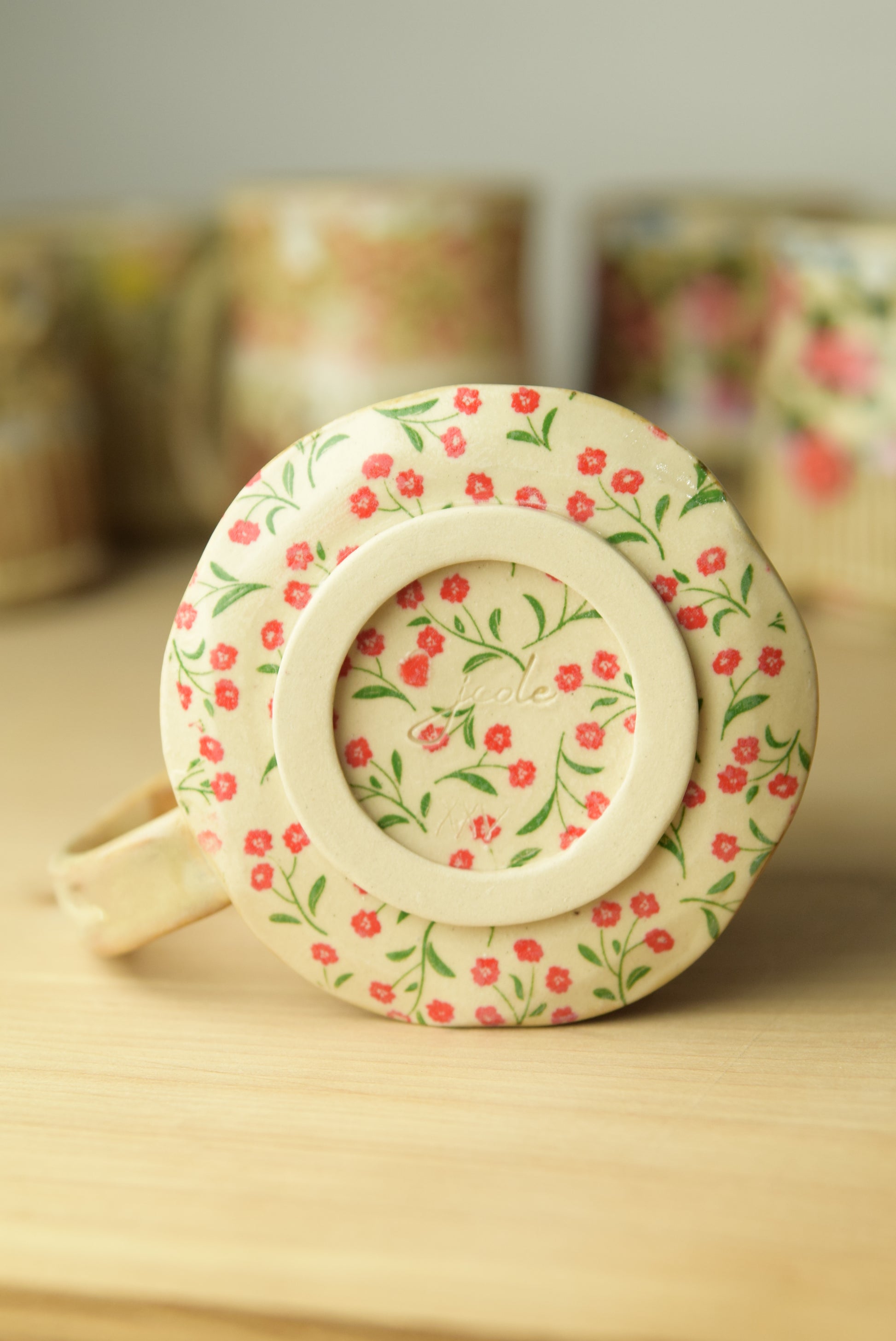 Wheel Thrown Pottery - Cottage Core Mini Red Roses Mug